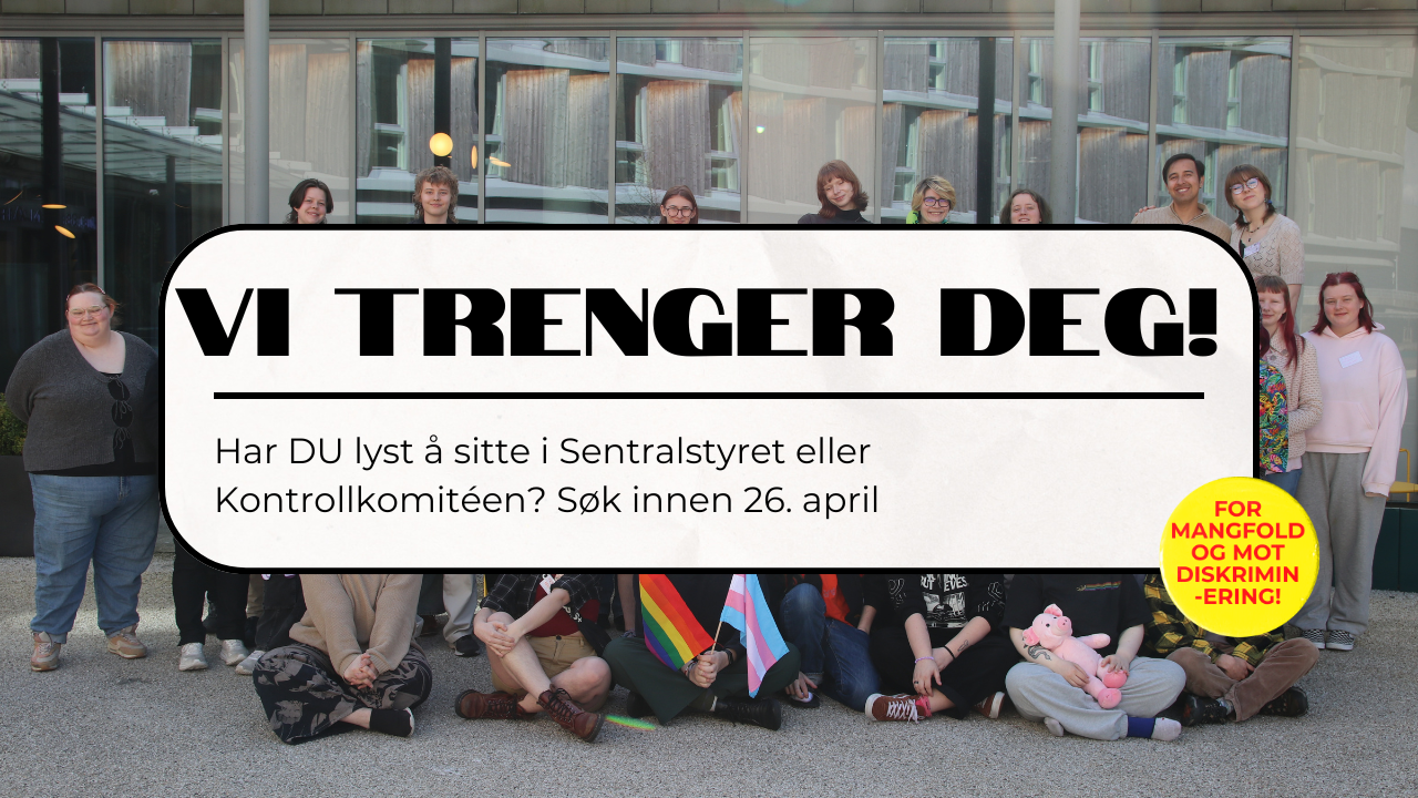 Landsmøtet i 2026 avholdes 8.-10. mai, og nå vil vi i Nominasjonskomitéen snakke med deg som har lyst til å bidra aktivt inn i Skeiv Ungdom sitt Sentralstyre i den kommende perioden (2 år fra juli 2026, med mulighet om å si fra seg sitt andre år i forkant av landsmøte 2027) eller Kontrollkomitéen (1 år fra juli 2026).